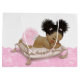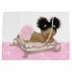Chica afroamericano, bolso de regalo para bebé, con una adorable bebé étnica, vestido con un atuendo rosa bonito en una elegante almohada sobre un hermoso fondo rosado de encaje. Este bolso de regalo de ducha de bebé chica se personaliza fácilmente con texto, y se puede añadir un color de fondo.