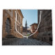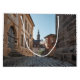 Fotografía de la iglesia "St. Stephan" vista desde la calle adoquinada "Pfarrgasse" en el casco antiguo de Bamberg, Alemania.