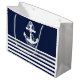 Bolsa De Regalo Grande Bandas blancas azules de la Marina Náutica y ancla
