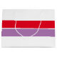 Este diseño deportivo y moderno presenta amplias rayas de carreras horizontales en el centro de lavanda y rojo brillante con fondo blanco.