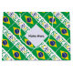 La bandera brasileña se muestra aquí con la palabra BRASIL abajo en los colores de la bandera. Brasil es la palabra portuguesa para Brasil. El diseño está embaldosado para una mejor estética. Los cuadrados apresurados forman un área blanca donde puedes personalizarla con tu nombre. Si prefiere dar un regalo personalizado, simplemente agregue el nombre de otra persona.