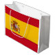 Este diseño presenta la bandera de España (conocida en español como "España"), oficialmente conocida como Reino de España, país del suroeste de Europa con algunos focos de territorio a través del Estrecho de Gibraltar y el Océano Atlántico. Su territorio continental europeo está situado en la Península Ibérica. Además, los enclaves africanos de Ceuta, Melilla y el Peñón de Vélez de la Gomera hacen de España el único país europeo que tiene una frontera física con un país africano, en este Marruecos funda. El territorio continental del país limita al sur y al este con el mar Mediterráneo, salvo una pequeña frontera terrestre con Gibraltar; al norte y al noreste con Francia, Andorra y el Golfo de Vizcaya; y al oeste y noroeste con Portugal y el Océano Atlántico, respectivamente. La capital y ciudad más grande de España es Madrid. Otras ciudades y pueblos importantes de España son Barcelona, Valencia, Sevilla (Sevilla), Zaragoza, Málaga, Murcia, Palma, Las Palmas, Bilbao, Alicante, Córdoba, Valladolid, Vigo, Gijón (Xixón), L'Hospitalet de Llobregat, Vitoria-Gasteiz, A Granada Coruña, Elche y.