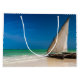 Barco de pesca tradicional en una playa de arena blanca en Zanzíbar, Tanzania.