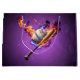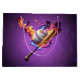 Béisbol en llamas. Diseño potente y dinámico con una brillante béisbol blanco con un punzante punteo rojo en el centro, rodeado de un fondo violeta intenso y brillante. El béisbol parece estar rodeado por las llamas que arden bailando en una mezcla fascinante de naranja, amarillo y azul. Estos colores vibrantes dan a la imagen una energía explosiva e inmediatamente atraen la atención del espectador. Las llamas no sólo parecen envolver el béisbol y el murciélago, sino que también crean una atmósfera llena de acción e intensidad. Simbolizan la pasión y el espíritu competitivo del deporte del béisbol.