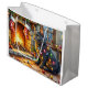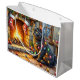 Bolsa De Regalo Grande Black Cat Sitting Fireplace with Christmas Lights