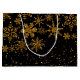 Bolsa De Regalo Grande Black & Gold Snowflakes Stars Feliz Navidad
