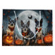 Descanse el espíritu espeluznante con este inquietante diseño de Halloween que presenta una manada de perros bajo un cielo oscuro, iluminado por la luna, rodeados de bates voladores y calabazas brillantes. Perfecto para los amantes de la diversión con sus peludos amigos.