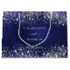 Bolsa De Regalo Grande Boda de nombre azul marino de plata