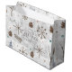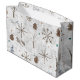 Un patrón de acuarela boho con copos de nieve hechos de ramas, ramas de árboles, troncos y pinecones enclavados en los deslizamientos de nieve. Esta decoración rústica tiene un ambiente cálido y familiar para los Navidades. Disponible en una paleta de color boho natural, este diseño de bolsos de regalo presenta tonos marrones, beige y azul de acero. Hemos proporcionado un texto opcional de 'Saludos de temporada' y puede personalizarlo con su nombre y fecha. Busque ID986 para ver todos los productos de coordinación con este adorable patrón de Navidades.