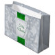 Aquí tenemos una preciosa bolsa de regalo que incluye una cinta metálica verde con copos de nieve y un marco ornamental que dice "Feliz Navidad" en un fondo de bokeh gris. Puede quitar el texto o el personalizar para el destinatario. ¡Esta bolsa es un juego con otras bolsas de regalo, papel de envoltura, papeles de papel tisular y una tarjeta de saludo! Será una adición perfecta a su regalo para sus amigos y familia en esta temporada de vacaciones.