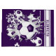 Esta fresca bolsa de regalos con temática de fútbol presenta una "explosión" de balones de fútbol de tamaño variado púrpura y blanco y formas estrella grises y moradas - la estrella púrpura tiene un patrón de pequeños puntos de polka blancos - personalizar con su nombre orientado verticalmente sobre rayas de varsidad blancas en el borde derecho, frontal y posterior - fondo púrpura (frontal y posterior) es personalizable - por katz_d_zynes