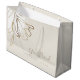 Bolsa de papel grande personalizada con flores de marfil elegantes. Diseño de marca de lujo con flores khaki doradas sobre fondo abstracto de marfil para tu pequeño negocio de joyería o productos de belleza. Edita el texto con la herramienta de edición Zazzle fácil de usar. Agrega el nombre y el negocio. Visita la tienda para ver toda la colección. Hay planificador, cuaderno, bloc de notas, carpeta, bolígrafo, portapapeles y mucho más disponible. Y por supuesto, ¡también hay desinfectantes y máscaras en la tienda!