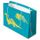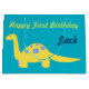 Este bolso del regalo es grande para el niño en su vida. Con un lugar a modificar para requisitos particulares con su nombre y edad, su niño pequeño amará el brontosaurus amarillo simple y los ilustraciones verdes y amarillos del triceratops en un fondo verde azulado brillante.