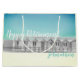 Bolso grande del regalo del retiro con las chozas de la playa en gris, azul y amarillo.