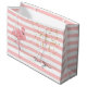 Bolso grande bonito del regalo, con un modelo horizontal rosado y blanco de la raya. Los gráficos de un purpurina rosado del flamenco y del oro acentúan, adornan el frente y la parte posterior del bolso rayado. El texto negro, en el frente del bolso, está listo para personalizar para leer lo que usted quiere. Bolso elegante del regalo para ella.
