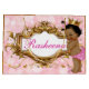 Una princesa africana adorable con una corona dorada, cubierta de pañales rosados y pantuflas rosas adorables en una elegante frontera dorada con un fondo rosado caliente. Brillo de oro en los lados de la bolsa de regalo. Personalizar con el texto de su elección.