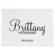 Regalos modernos de Bridesmaids personalizados en blanco y negro con el nombre personalizado de la dama de honor en estilo moderno de caligrafía con título y fecha boda en estilo moderno de letra sans serif. También perfecto para la empleada de honor, la niña flor, la madre de la novia y más.