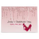 Un diseño moderno y trendy en bolsas de regalo para despedida de soltera. El fondo tiene una imagen de brillos rosados que gotean, a lo largo de la parte superior. El resto del fondo es un gradiente de color rosa pastel delicado. Un par de zapatos de tacón alto rosados debajo del texto personalizado.