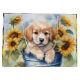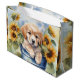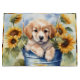 Acuarela Cachorro de girasol, este diseño presenta un adorable Cachorro en un cubo con girasoles hecho en acuarela.
