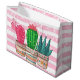 Bolsa De Regalo Grande cactus dibujado mano con el fondo de las rayas