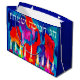 "Chag Chanukah Sameach" means Happy Hanukkah! This gorgeous gift bag features a full menorah of "peeking" lights over a colorful, abstract background. Let the gifting begin!