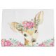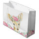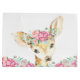 Bolsa de regalo para baby shower de ciervo con adorable cría de ciervo niña con flores en la cabeza sobre un fondo de hermosas flores de acuarela. Esta adorable bolsa de regalo de cría de ciervo niña se personaliza fácilmente con texto.
