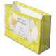 Primer Chica del cabello rubio de la comunión Gracias bolsa de regalo para presentarle a sus invitados después de la ceremonia con un patrón de Damasco amarillo. Todo el texto se puede cambiar para adaptarlo a sus propios requisitos. Gráficos de BlackCatsMedia y Zenwaredesign.