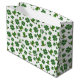 Gran bolsa de regalo brillante con una imagen de shamrock y sombreros altos en blanco. Consulte la bolsa de regalo, el confetti, la caja de favores, la etiqueta, el pegatina cuadrado y el papel de envolver. Vea toda la colección de bolsas de regalo del Día de San Patricio en los TOUCHES ESPECIALES| Sección Favoritos de la fiesta.