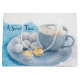 Esta deliciosa bolsita de regalo dulce incluye una taza de chocolate caliente y un plato de dulces. El plato y la taza azul claro están colocados sobre un fondo blanco. El texto "A Sweat Treat" puede ser personalizado. Este diseño está en la parte delantera y trasera, mientras que los lados son blancos con un patrón repetido de copos de nieve azules. Las bolsas de regalo están disponibles en grandes, medianas y pequeñas.