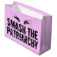 Un bolso del regalo de las derechas de las mujeres intrépidas que ofrece los ojos de una mujer sobre las palabras rompe el patriarcado en fresco, fuente del grunge en un fondo rosa claro. Compre este papel de regalo para cada mujer fuerte que usted sabe para ayudarles para alzarse y para exigir igualdad. ¡Rompamos ese techo de cristal!