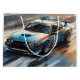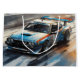 Experimente la emoción de la velocidad con esta dinámica obra de arte que cuenta con un coche de carreras azul en acción, perfecto para los aficionados al deporte motorizado y los coleccionistas.