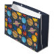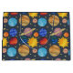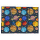 A bright, playful pattern featuring watercolor planets and stars on a dark background. Made to feel fun and full of cosmic energy.
