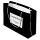 This black and white graduation gift back has black script you can edit to show a custom message. (Shown: Congratulations) Additional text is for personalizing the grad gift bag with the graduate's name and the year the student is graduating. The text is inside of a scalloped shape.
