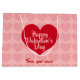 Un gran corazón rojo sobre un patrón cardíaco rosa claro. Añade un nombre al frente y el tuyo al fondo.