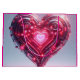 La brillante luz rosa brilla a través de este moderno y metálico corazón futurista lleno de amor.