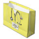 Unique nursing school graduation gift bag for your favorite nurse grad featuring creative yellow hospital scrubs, stethoscope and funny Swiss Army knife art. To personalize edit text to add name of nurse, physician assistant or doctor.