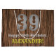 Este diseño de bolsa de regalo inspirado en el oeste y el country para cumpleaños presenta un gran número rústico "39", el mensaje "Feliz Cumpleaños 39,", un nombre personalizable y un patrón de fondo inspirado en la textura de la madera falsa. Una bolsa de regalo de cumpleaños personalizable como esta podría ser una forma divertida de envolver un regalo que se da en celebración del trigésimo noveno cumpleaños de alguien. [~Z0000470]