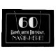 Este estilo vintage inspirado en el estilo de los años 20-30, presenta un gran estilo art decó inspirado en el número "60", el mensaje "Feliz cumpleaños número 60", un nombre de personalizable y un patrón fronterizo compuesto por líneas delgadas. El fondo es negro de color. Una bolsa de regalo como esta puede ser usada para dar un regalo o regalo en honor a los 60 años de alguien. [~Z0000496]