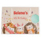 Acuarela, beige y marrón, la línea de cumpleaños de los animales para los amantes de los animales. Conejo y erizo con tarjeta. Nombre, dirección y edad modificables. Compruebe otros suministros y artículos del fiesta de la colección.