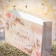 Para una Despedida de Soltera de estilo boho, bohemio. Un fondo metálico falso de color rosa oro. Decorado con flores rosas, hierba de pampas de color rosa oro. Personaliza y añade una fecha, nombre.