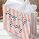 ¡Eleva tu regalo con una bolsa de regalo de nombre personalizado! Este diseño de moda presenta una tipografía de escritura elegante y un sencillo patrón rayado con un aspecto de lino falso. Personalice la plantilla con el nombre y la edad del destinatario: perfecto para cumpleaños de hito, incluidos los días 18, 21, 30, 40, 50, 60, 70, 80, 90 y 100. Este elegante diseño combina un estilo atemporal con un toque moderno, y el texto puede ajustarse fácilmente para aniversarios, fiestas o una ocasión especial. Fabricado con papel de calidad superior y disponible con acabado mate o brillante. Colores impresos: azul oscuro, marina, coral natural, rosa melocotón y blanco.
