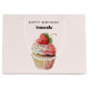 Bolsa de regalo con una ilustración apetitosa que presenta una deliciosa magdalena. Crema blanca y una gran fresa adornan este dulce manjar.