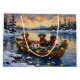 Bring spirited, low-riding charm to your holiday season with this adorable Dachshund Christmas design! This magical scene features three cute, expressive Dachshunds (Doxies) sitting attentively in a cozy wooden boat, gently floating on a serene snowy lake at sunset. The boat is beautifully adorned with glowing Christmas string lights and fragrant pine garlands, while the dogs wear festive scarves. They are surrounded by colorful wrapped presents and cheerful holly branches. Soft snowflakes gently fall, and the shimmering reflection of the lights on the water creates a truly magical winter holiday atmosphere. This design is a perfect Christmas gift for any Dachshund owner, dog lover, or admirer of festive and beloved hound dog art, capturing the serene joy of the season.