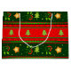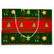 ¡Presenta tus regalos con estilo! Perfecto para regalos festivos, esta gran bolsa de regalos, con grandes franjas horizontales rojas y verdes, adornada con árboles verdes de Navidad, flores rojas con hojas verdes y lindas estrellas doradas, añadirá una ráfaga de color a tu regalo. ¡Esta es una buena manera de presentar cualquier sorpresa especial para estos Navidades!
