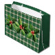 Bolsa de regalo grande de cuadros verdes y blancos