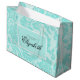Bolsa de regalo de damasco verde. Esta hermosa colección floral clásica será perfecta para una celebración de jardín interior o exterior para una boda, fiesta de despedida de soltera, baby shower o una celebración de estilo campestre. Toda la colección es personalizable. Disfruta tu celebración, ¡salud!