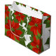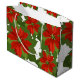 Gran bolsa de regalo de vacaciones mostrada en una estampación de Navidades rojos de la marca de la poinsettias. Personalizar este artículo o compra tal cual.