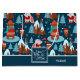Añada un toque estacional lindo a su regalo con esta adorable bolsa de regalo de Navidades azules y blancos personalizados. La bolsa de regalo tiene un patrón de patinaje sobre hielo de oso marrón festivo, una lechuza con sombrero de Santa y gafas, un pájaro en una montaña nevada, un conejito jugando una trompeta y árboles de Navidad en la nieve. El texto del centro dice que no sé dejar que nieve. Añade tu apellido familiar o un nombre para un toque personalizado.