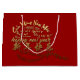 Da tus mejores deseos para el Año Nuevo Chino de la Rata en muchos idiomas: vietnamita, chino, inglés, ruso, francés, alemán, español, finés, sueco... Diseño en efecto digital dorado + sombra de caída con fondo transparente en una gran bolsa de regalo con fondo rojo oscuro. Puede cambiar fácilmente el color de fondo haciendo clic en el botón personalizar. Disponible en otros tamaños: medio, pequeño y vino. Tarjeta de lujo que combina con Relieve metalizado real, servilleta de papel, productos artesanales y casa.
