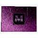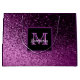 Gradiente de brillo falso morado y rosa intenso. Un marco negro y morado con espacio para el nombre de la futura novia y la letra de su monograma. El nombre está escrito en blanco con un estilo de letra manuscrita moderna. Letra de monograma en morado. Perfecto para una despedida de soltera.